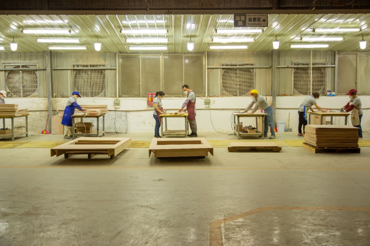 Meixu furniture has the most advancedautomatic production equipment and productionline in the world, providing top quality assurancefor your customized furniture. Meixu furniturecompany has imported the latest advancedequipment from West Germany, ltaly andTaiwan, and now has more than 200 sets ofvarious equipment, as well as a large numberof domestic equipment. The main equipmentincludes: German venjakob automatic paintspraying line, automatic electronic numericalcontrol cutting saw, German HOMAG computernumerical control five axis machining center,ltalian intelligent paint spraying manipulator, automatic multi axis row drilling machine.automatic veneer shearing machine, veneersplicing machine, data multi-layer hot press,four side planer, vertical shaft milling machine,copying lathe, wood drying room, tenon andgroove machine,precision Density saw.automatic tenoning machine, comb tenonbutt joint machine, comb tenon tenoningmachine, etc.At present, the main machinesand equipment used in paint production lineinclude large sanding machine, paint filmpolishing machine, water sand machine forpaint film and dust-free spray paint room.