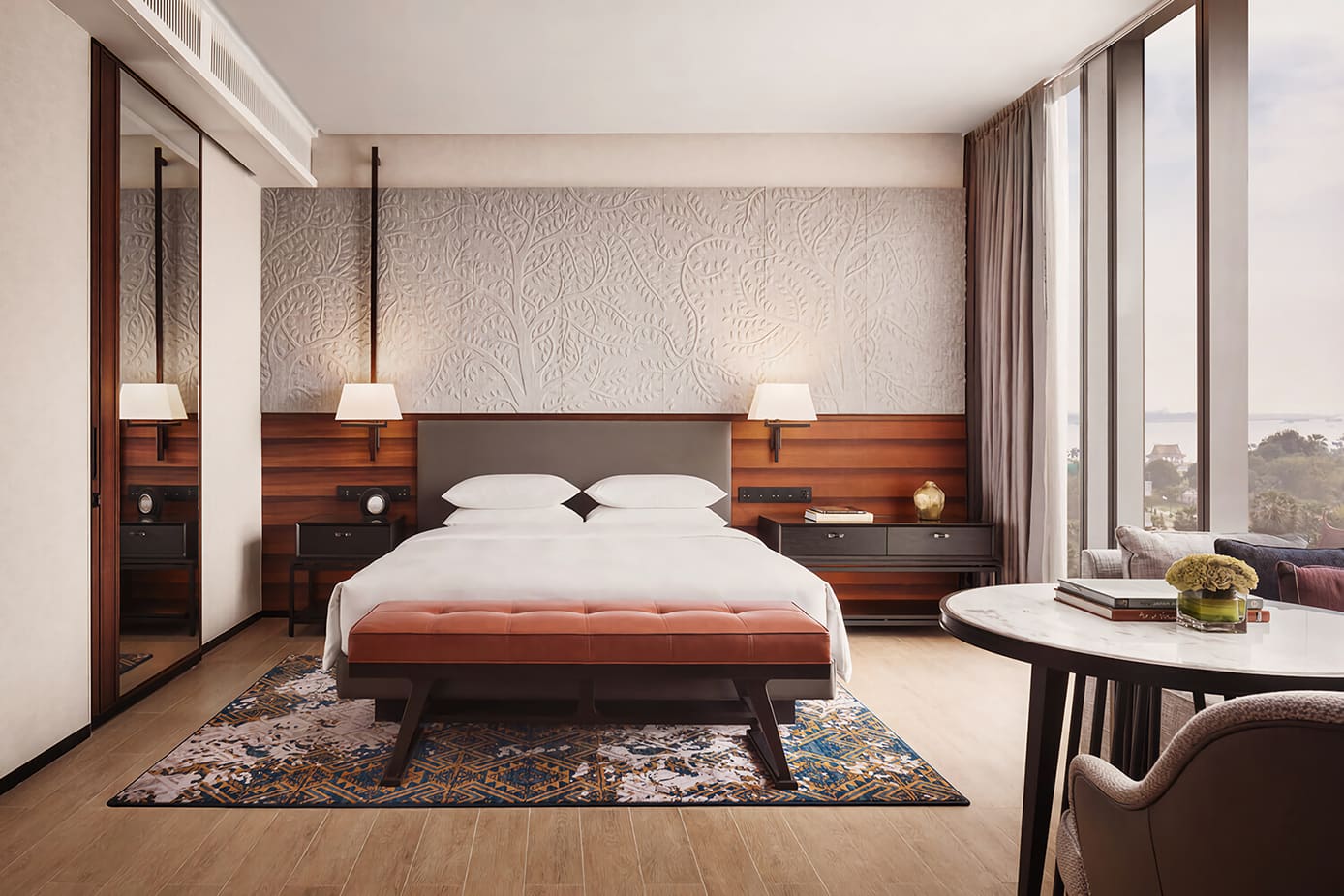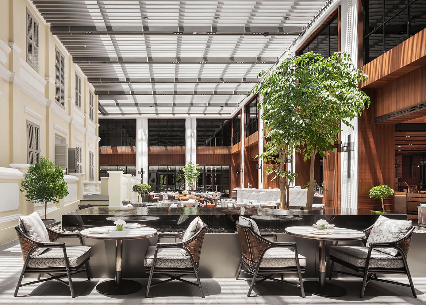 The interior design of Phnom Penh Hyatt Regency Hotel is full of Cambodian characteristics, seamlessly integrating the decorative styles of Khmer architecture. Hyatt Hotel has adopted a new technology that can not only preserve and restore existing buildings but also reduce the use of construction materials, human resources, energy and water required for new buildings. The hotel's design and management adhere to the international standards of the global Hyatt Hotel brand, and the hotel will be completed in 2020. The hotel has 250 guest rooms and will also offer a fitness center, a spa, as well as a rooftop swimming pool and bar, allowing guests to enjoy views of the Cambodian Royal Palace, the Mekong River and the Tonle Sap River up close.